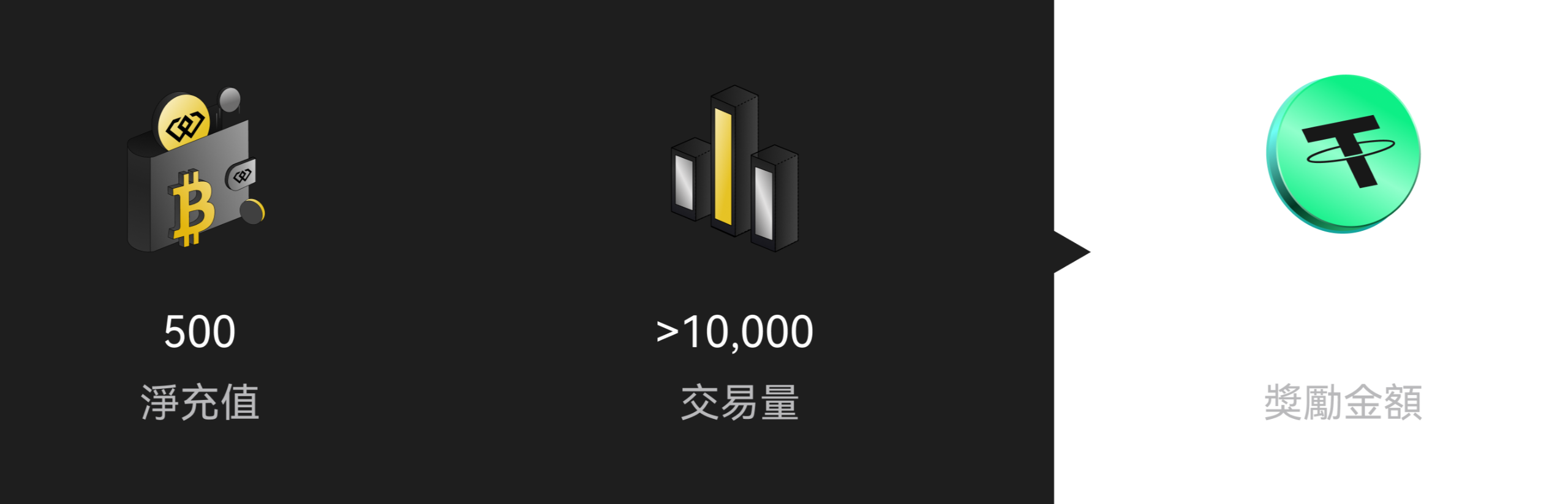 活動期間,前1,000完成淨充值任務的用戶,即可獲得最高100USDT,先到先得,送完即止,具體獎勵安排如下: